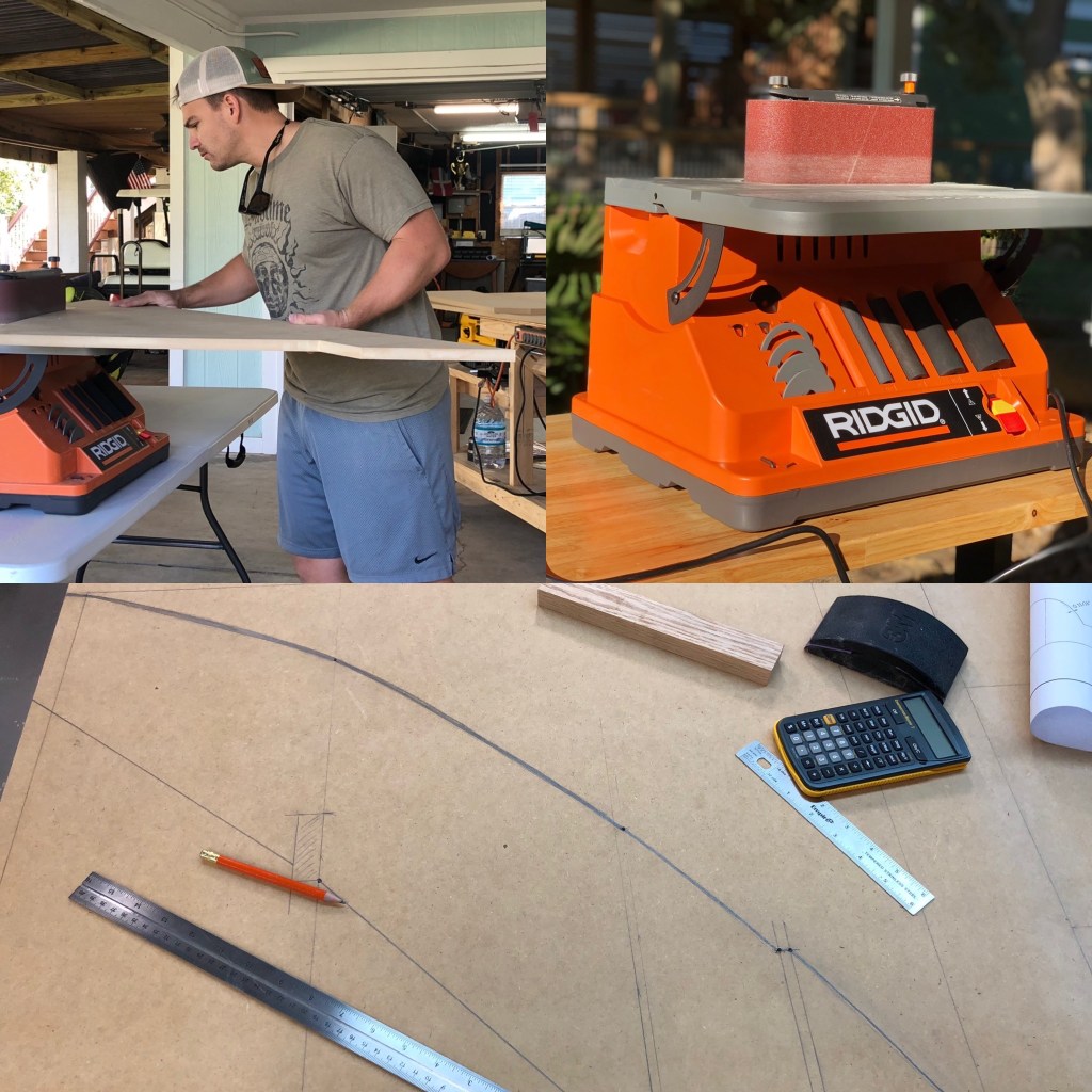 Decided to buy a new toy to help get good, even, rounded edges. The jig saw is not great at cutting uniformly…or it could be the operator. The edge sander worked great for the forward station and the keel.