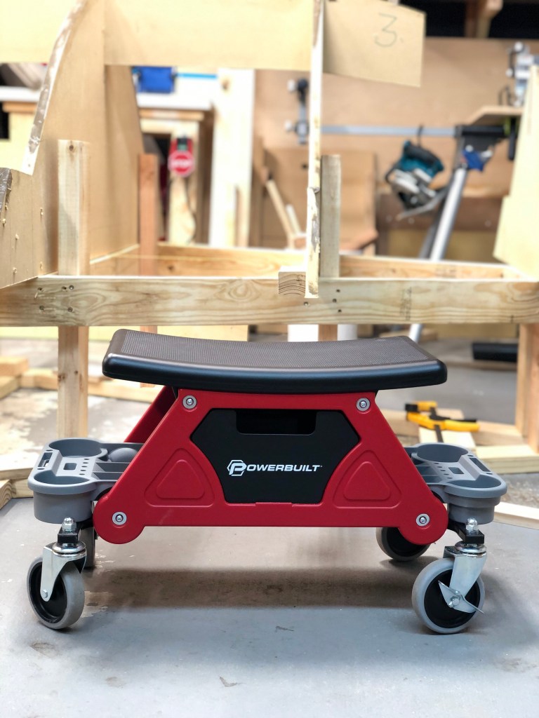 I don’t need much of an excuse to buy a new toy as you will see. This little guy is awesome and allows me to effortlessly scoot around the shop while seated. I decided to build my strongback lower to the floor so I can work easily while seated or standing. I have heard if you build it too tall and you will need a step ladder to access the whole hull. (Credit to Corey for the advice.)