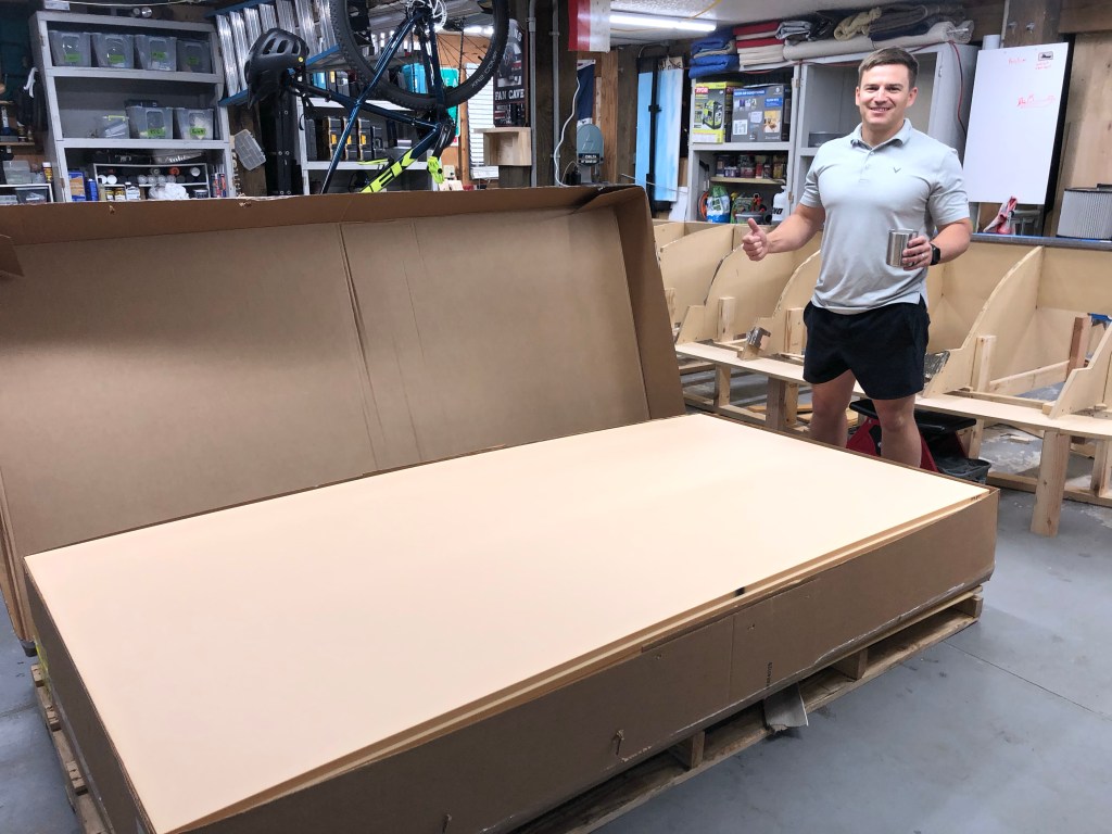 The foam comes in 4’x8’ sheets. I ordered 15. When you look at a box of it stacked on top of itself, I’l admit it is pretty daunting to think that you need to turn those flat pieces into a three dimensional shape. My strategy was to start with the big pieces and then work with the smaller drop pieces to fill in the rest.