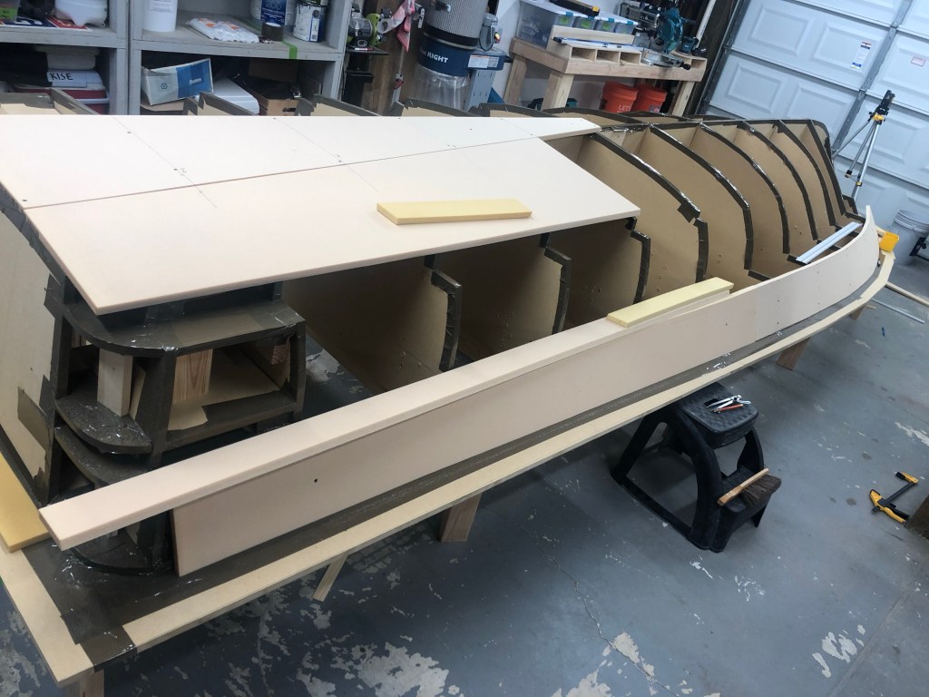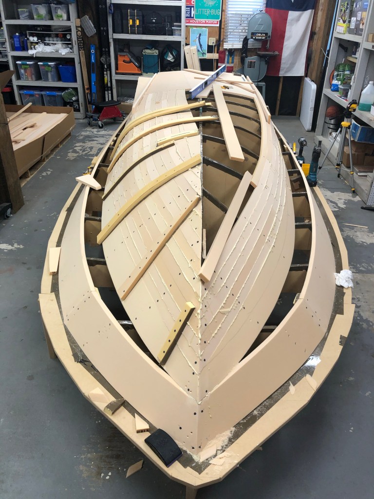 This is a pretty cool milestone. It’s not pretty but it finally is starting to look like a skiff!