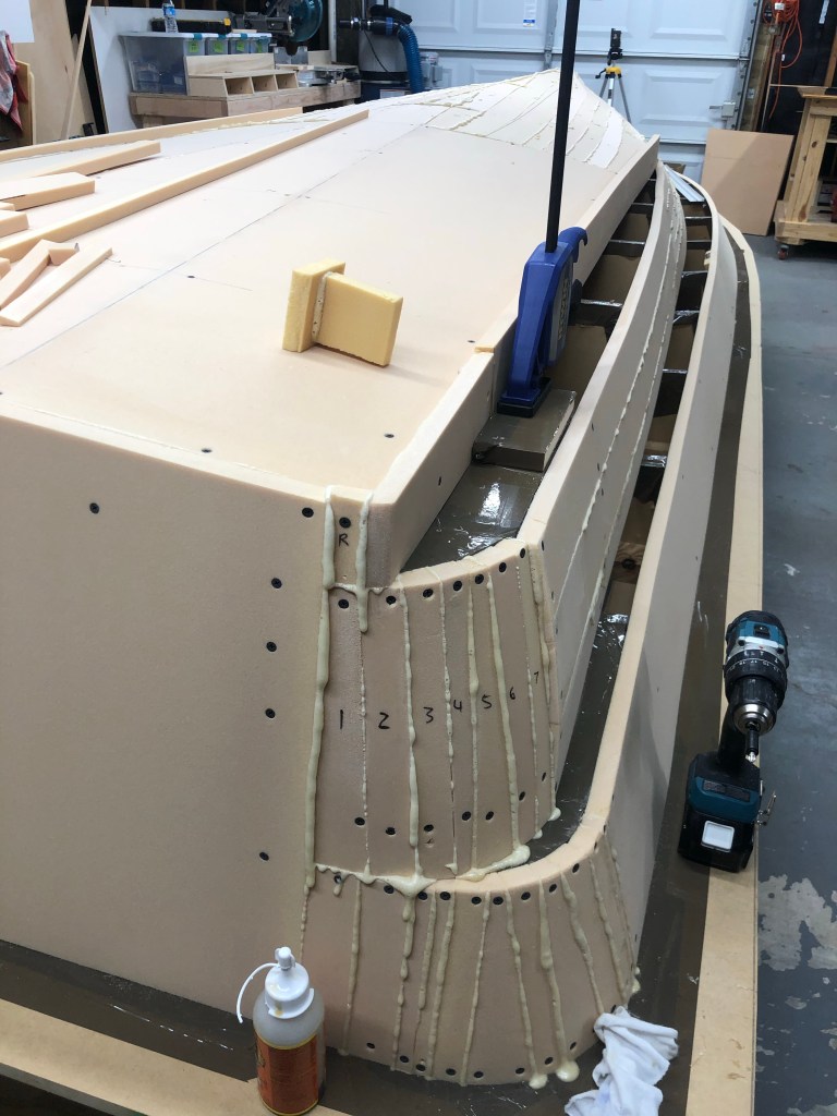 As previously mentioned, getting the foam from the EU to my house in Texas took much longer than I originally planned for. There are other foams that I found to be more readily available but the top of the line product was the one I wanted. I had been given some Carbon Core 6# foam scrap pieces that was used on other builds. First impression was that the H80 was much more dense with less voids. Also it is more difficult to dent with my finger pressure than the CC6#.