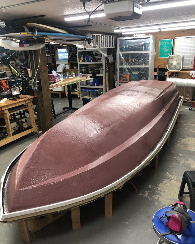 So without further ado… What do you do with a freshly basalt laminated upside-down skiff?